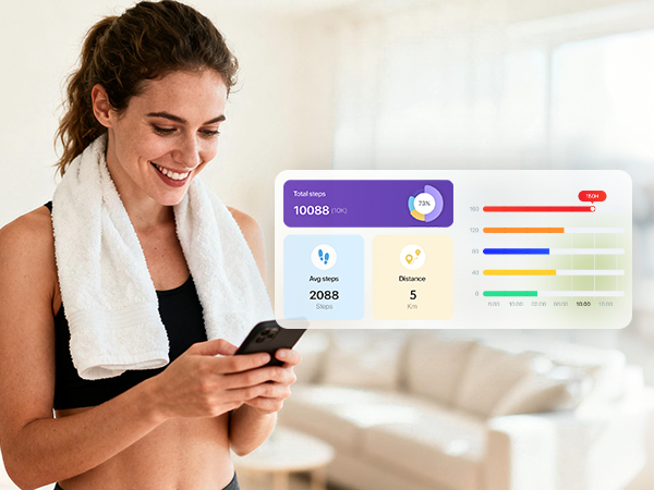 Connect your treadmill to the FitShow App to enjoy guided workouts, virtual routes, and real-time progress tracking.